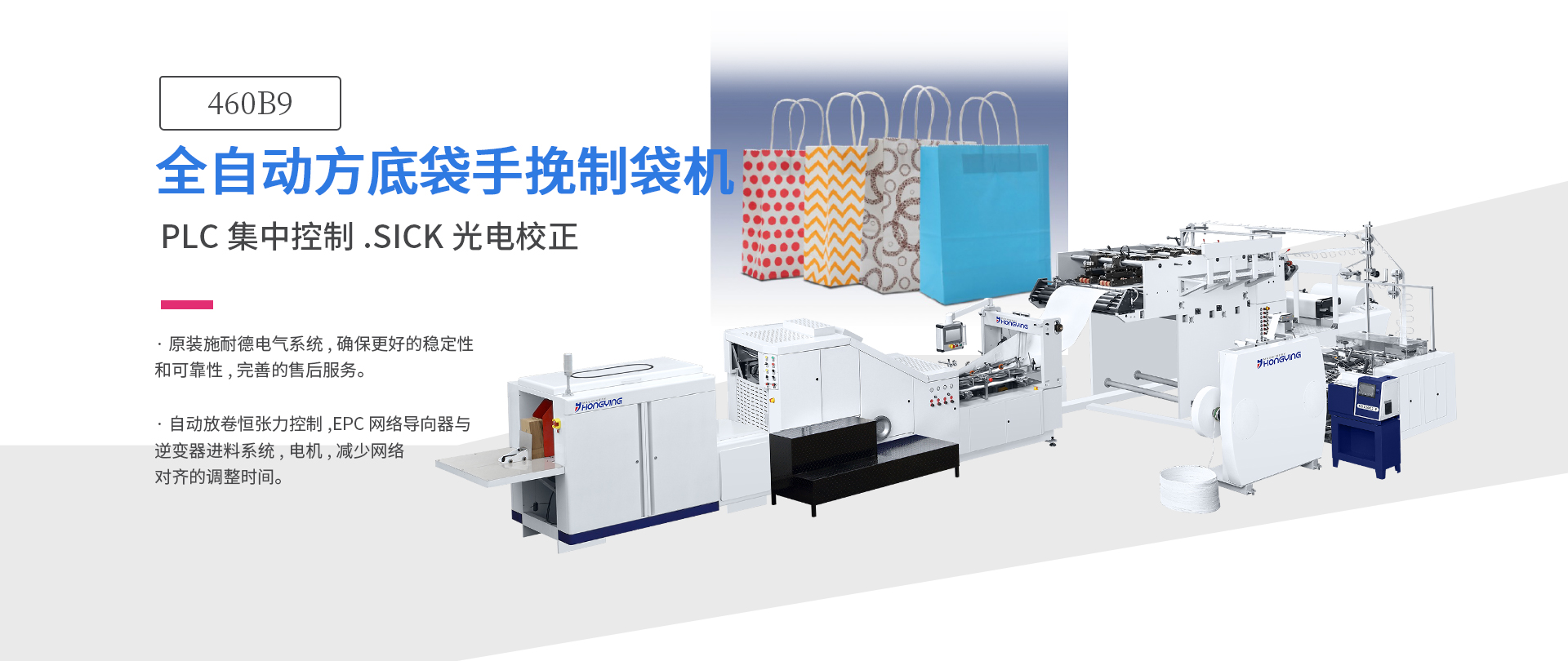 • 460B9全自動(dòng)方底手挽手提袋紙袋機(jī)